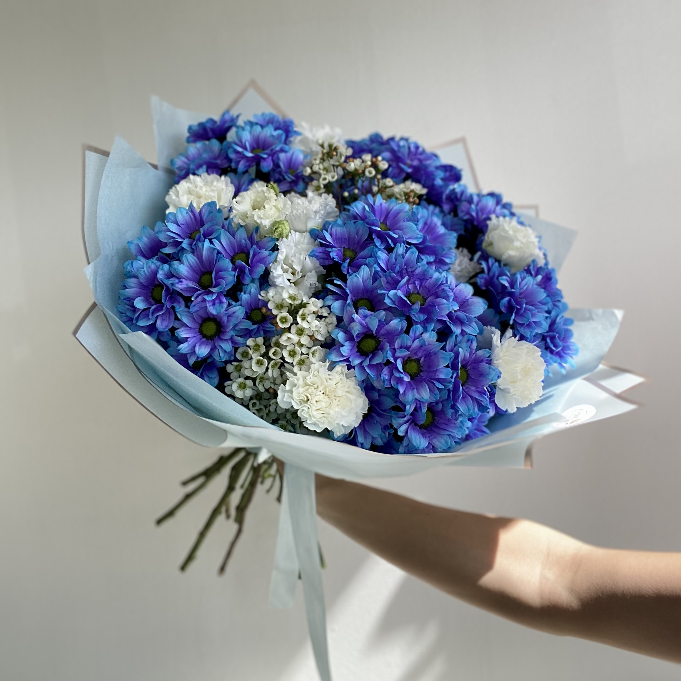 Kimbu põhitoon sinine, lisatud õrnalt heledaid õisi Suurus L.